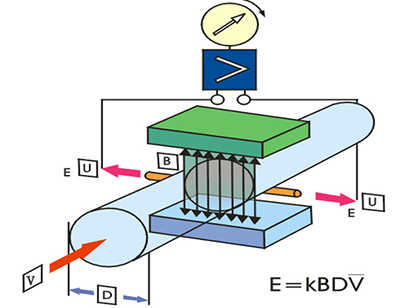 由于K為常數,勵磁電流是恒流的,故B也是常數,則由(1-1)式可知,體積流量Q與信號電壓E成正比,即流速感應的信號電壓E與體積流量Q成線性關系。因此,只要測量出E就可確定流量Q,這就是電磁流量計的基本工作原理。
