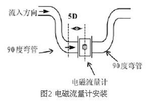 (2)直管段保證在前5D后3D為獲得儀表測量精確度,在傳感器上游側的直管段長度不小于5D,下游側不小于3D(D為傳感器的名義直徑)。若在傳感器上游側有兩個以上的彎頭或其它阻流件,則前置直管段應大于10D。